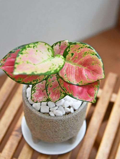 葉の中心部がピンクレッドに染まり、葉の縁部分がグリーンになる、美しく個性的なアグラオネマ・ビューティー。