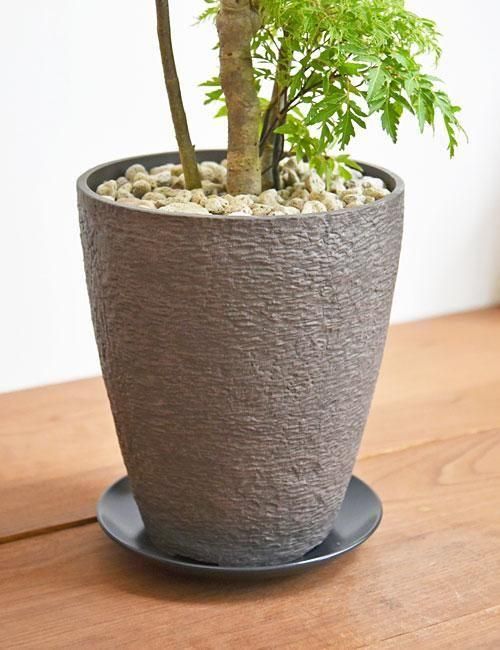彫刻刀で細かく削ったような、全体の波々模様が適度な風合い感を醸す鉢に仕立てました。