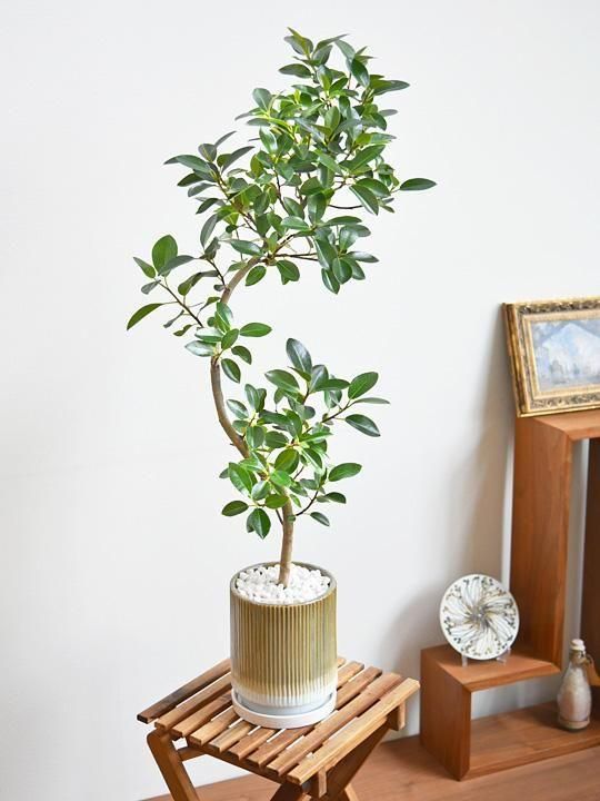 美しい曲り樹形のフランスゴムの木を、