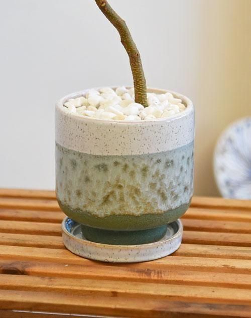 当店で扱う鉢や花器は、ハンドメイドのものや、風合い感(貫入系、シャビー系等)を高めたものが多くあり、製法上、若干の色ムラ、気泡、釉飛び、歪み、釉薬のごく一部剥離等、ある場合があります。